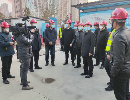 張勝利一行走進(jìn)項(xiàng)目工地,實(shí)地聽取了項(xiàng)目概況及施工進(jìn)展,并仔細(xì)察看了現(xiàn)場(chǎng)情況。對(duì)項(xiàng)目安全標(biāo)準(zhǔn)化以及文明施工給予了肯定。同時(shí)對(duì)項(xiàng)目文化建設(shè)以及建成后的整體運(yùn)營規(guī)劃等方面進(jìn)行了專業(yè)指導(dǎo)并提出亮點(diǎn)工作要求。一是要求項(xiàng)目部要做好預(yù)先發(fā)現(xiàn)、判斷可能導(dǎo)致安全事故的原因及相應(yīng)的防范措施,始終把安全放在第一位;二是要充分發(fā)揮央企的使命擔(dān)當(dāng),攻堅(jiān)克難、高效推進(jìn),大力度推進(jìn)工程建設(shè),精心組織施工,做出一個(gè)精品工程、標(biāo)桿工程。