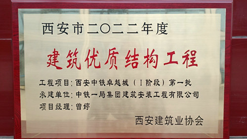 (西安訊)2023年2月,從西安市建筑業(yè)協(xié)會公布了2022年度(下半年)西安市建筑優(yōu)質(zhì)結(jié)構(gòu)工程認定結(jié)果,由中鐵一局建安公司承建的西安中鐵卓越城項目榮獲“西安市建筑優(yōu)質(zhì)結(jié)果工程”獎。