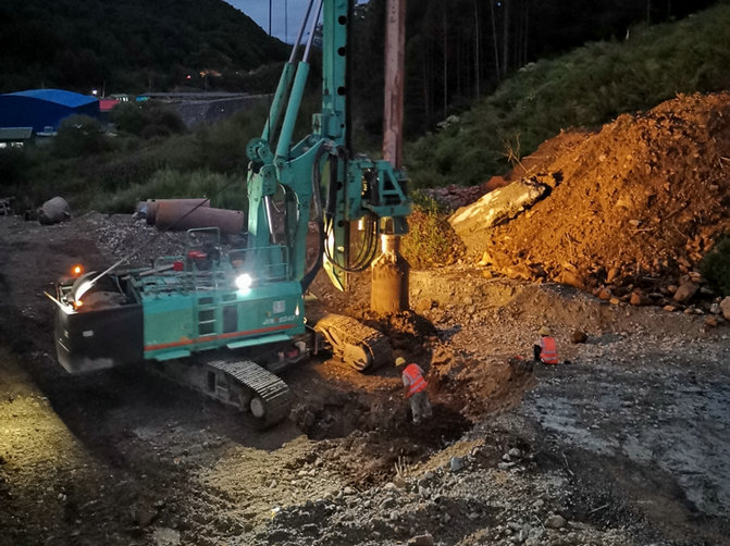 據(jù)黑溝河大橋負(fù)責(zé)人梁子威介紹,黑溝河大橋所在地線路地形起伏、溝谷縱橫,地質(zhì)條件差,交通不便,加之當(dāng)?shù)赜謱儆诟呔暥葒?yán)寒地區(qū),最冷月平均氣溫-16.3℃,地面最大凍結(jié)深度達(dá)1.8米,全年有效施工期短,施工難度大。為保證施工進(jìn)度按計(jì)劃進(jìn)行,項(xiàng)目團(tuán)隊(duì)制定了詳細(xì)的施工方案,并在施工過(guò)程中根據(jù)天氣、地質(zhì)、機(jī)械和物資材料等因素的變化隨時(shí)進(jìn)行調(diào)整,最大程度保障施工生產(chǎn)的順利進(jìn)行。