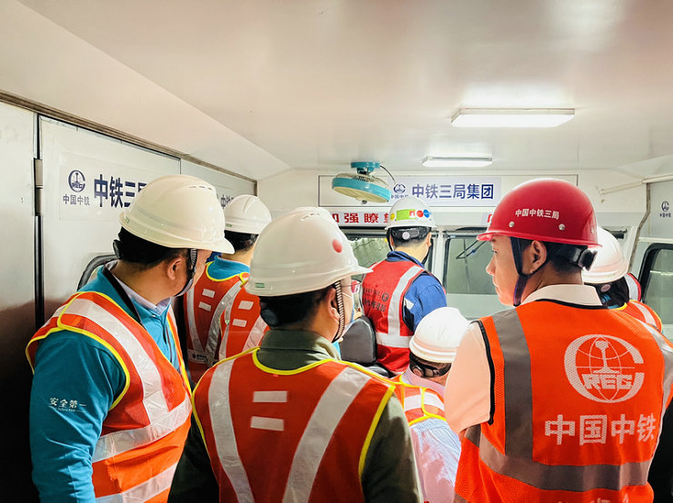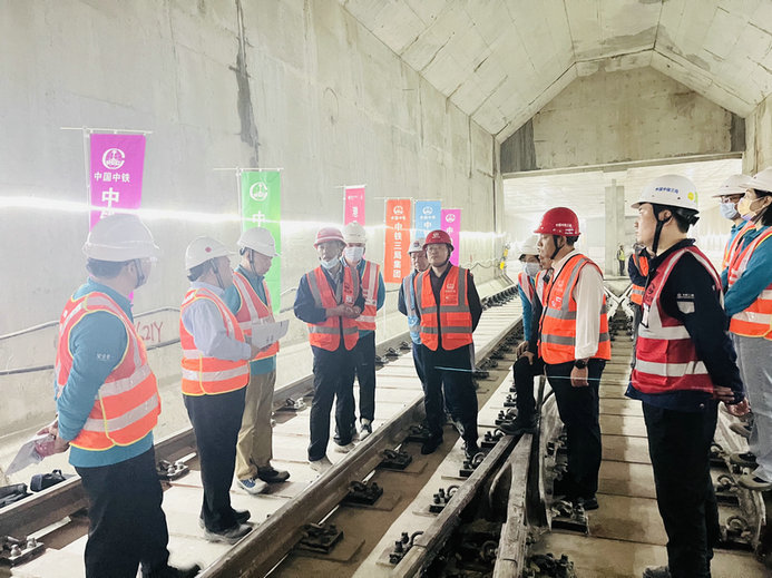港鐵中鐵電化軌道交通(深圳)有限公司總經(jīng)理孟榮輝、副總-建設吳啟中、安全總監(jiān)蔡偉森、副總-設計王昭斌,中鐵三局集團線橋有限公司總經(jīng)理齊長寧、副總經(jīng)理邸向軍等相關領導蒞臨參加了短軌鋪通儀式,從深圳灣口岸站乘坐新能源軌道車至科苑站。在所有建設、運輸作業(yè)人員的精誠配合下,軌道車在安全可靠的軌道限界內(nèi)平穩(wěn)順暢運行,孟總對鋪軌成果表示十分滿意,并對全體運輸人員的標準化作業(yè)模式致以贊揚。儀式完成后,孟總再次強調(diào)要高度重視安全生產(chǎn)工作、嚴格把控安全隱患風險,以安全生產(chǎn)為準繩為深圳城市軌道交通13號線早日開通筑牢安全保障。