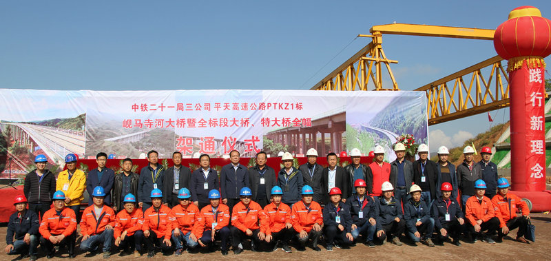 在橋梁架通慶典儀式上,中鐵二十一局三公司副總經(jīng)理魏惠民代表公司首先致辭,感謝業(yè)主、地方各級政府部門、以及全體建設(shè)者的作出的辛勤努力;然后由項目部常務副經(jīng)理、總工程師柳吉煥對全標段大橋、特大橋建設(shè)情況、施工工藝進行簡要匯報;接下來,甘肅省公路建設(shè)管理集團有限公司總經(jīng)理張曉軍、華亭縣交通運輸局局長關(guān)永平、甘肅省公路建設(shè)管理集團有限公司副總經(jīng)理、平天高速平?jīng)龆雾椖哭k主任李文芙、甘肅新科建工監(jiān)理咨詢有限公司副總經(jīng)理、PTKZJL1標駐地高監(jiān)劉鵬舟等先后作了書面講話,熱烈祝賀中鐵二十一局三公司PTKZJL1標段特大橋、大橋全幅勝利鋪通。架通儀式結(jié)束后,各位領(lǐng)導十分高興地與建設(shè)者合影留念。