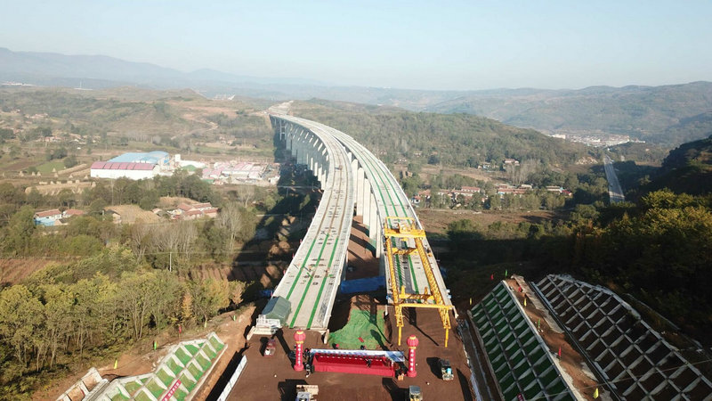 峴馬寺河大橋最后一片梁架設(shè)