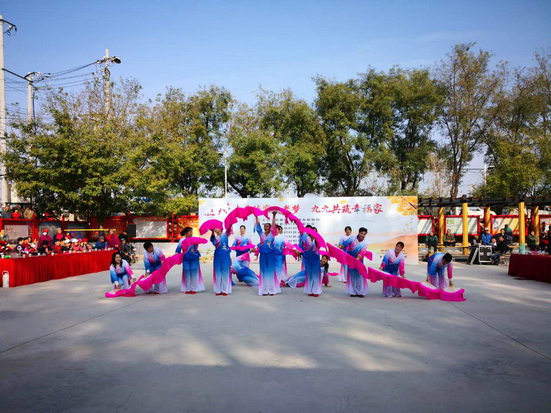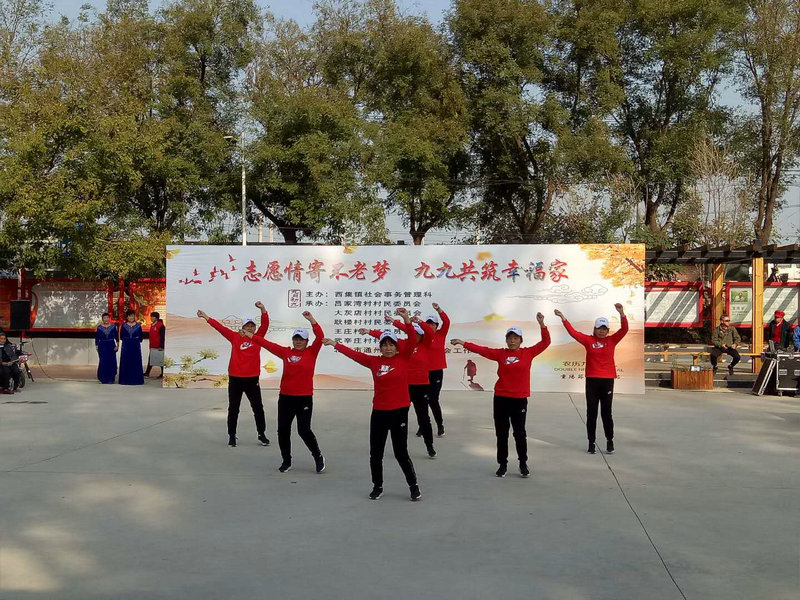 活動(dòng)中,大灰店社區(qū)的傳統(tǒng)民俗文化小車會(huì)令人印象深刻,每個(gè)角色以細(xì)膩的表情、夸張的動(dòng)作,以帶有戲劇性的傳統(tǒng)舞蹈方式把故事呈現(xiàn)給觀眾,體現(xiàn)民俗文化,極具觀賞價(jià)值。武辛莊的多彩的風(fēng)車令人眼花繚亂,回顧童年趣事,讓人心情愉悅。春曉事務(wù)所楊靜老師以問(wèn)答的形式,講解了重陽(yáng)節(jié)的來(lái)歷和習(xí)俗,并在菊花茶的淡淡清香中與老年人趣味互動(dòng),歡聲笑語(yǔ),掌聲連連。緊接著,一場(chǎng)呂家灣舞蹈隊(duì)的《健康走出來(lái)》展現(xiàn)出老年人的“精氣神兒”,盡情展示了老年人張揚(yáng)個(gè)性、老有所為、老有所樂的夕陽(yáng)風(fēng)采!呂家灣村的女生二重唱《愛的奉獻(xiàn)》,唱出對(duì)老年人的敬愛與奉獻(xiàn),弘揚(yáng)志愿助老的精神。王莊秧歌隊(duì)的《美在西集》在歡快的曲調(diào)、優(yōu)美的舞姿中展現(xiàn)了西集人民以開放創(chuàng)新、和諧奮進(jìn)的精神風(fēng)貌。
