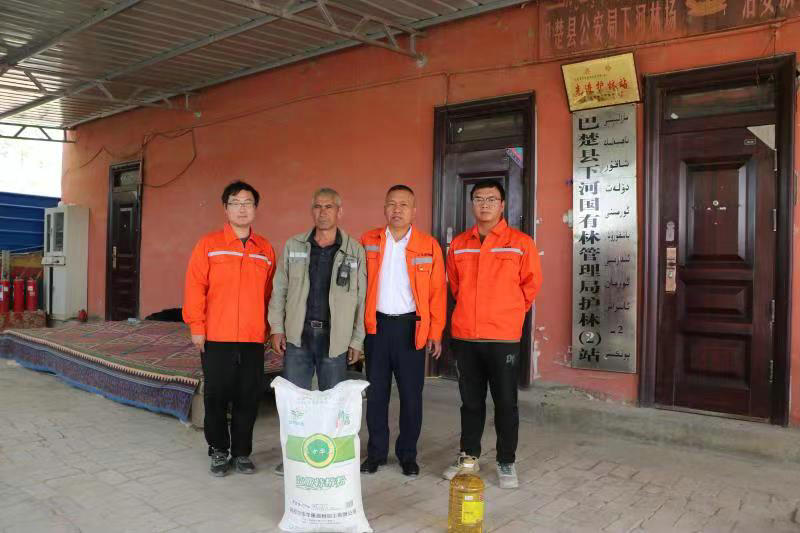 黨支部書記董軍一行深入巴楚縣下河林場護(hù)林站,為常年守護(hù)夏河林場的51歲維吾爾族職工艾買提·沙吾提帶去了米、面、油等慰問品,了解民族同胞生產(chǎn)生活、家庭收入等情況,并勉勵他們要堅(jiān)定信心,通過自身努力不斷提高生活質(zhì)量,共同創(chuàng)建幸福、美滿、和諧、團(tuán)結(jié)大家庭。進(jìn)入夏季以來,持續(xù)高溫干旱天氣,造成森林防滅火形勢異常嚴(yán)峻,護(hù)林員開展“白加黑”應(yīng)急森林防滅火巡查值守模式,白天巡邏,晚上值班,堅(jiān)守在林區(qū)防滅火一線,保障項(xiàng)目施工區(qū)域防火安全和自然保護(hù)區(qū)胡楊林。