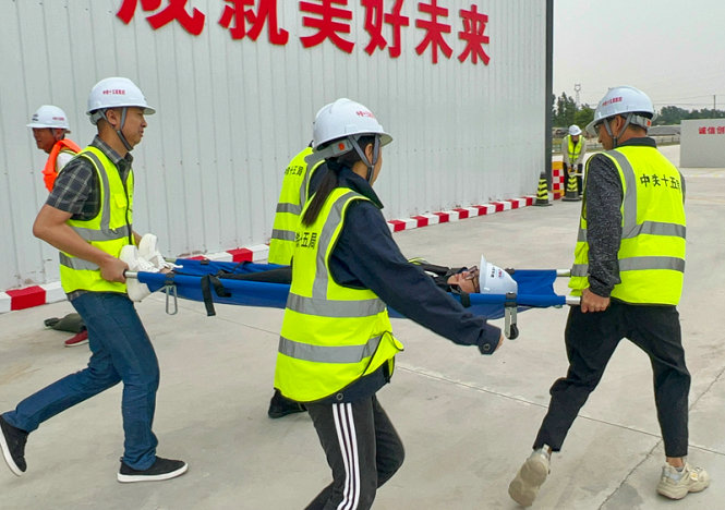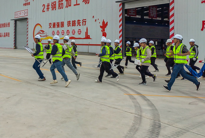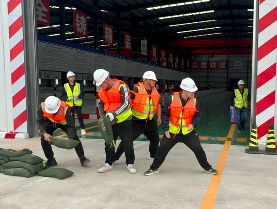 此次演練模擬河北省滄州市海興縣突遭暴雨襲擊,項(xiàng)目2號(hào)鋼筋加工場(chǎng)水位急速上漲,重要物資設(shè)備和作業(yè)人員遭遇險(xiǎn)情,急需轉(zhuǎn)移。分部安全管理部部長(zhǎng)、防洪搶險(xiǎn)監(jiān)測(cè)預(yù)警組組長(zhǎng)張海嬌發(fā)現(xiàn)汛情后,立即向分部負(fù)責(zé)人、應(yīng)急救援總指揮宋延濤報(bào)告。總指揮隨即下達(dá)命令,立即啟動(dòng)防汛搶險(xiǎn)應(yīng)急預(yù)案。監(jiān)測(cè)預(yù)警組、應(yīng)急搶險(xiǎn)組、醫(yī)療救護(hù)組、物資后勤組、通訊聯(lián)絡(luò)組、保衛(wèi)疏散組等6個(gè)小組的應(yīng)急搶險(xiǎn)人員迅速趕赴現(xiàn)場(chǎng),展開搶險(xiǎn)救援。裝填、運(yùn)輸沙袋筑防水壩,接水管、安裝水泵抽排水,對(duì)受傷人員進(jìn)行急救并轉(zhuǎn)移至安全地帶或醫(yī)院,對(duì)危險(xiǎn)區(qū)進(jìn)行警戒,維持交通秩序等應(yīng)急處置工作緊張有序進(jìn)行……現(xiàn)場(chǎng)情景模擬真實(shí),應(yīng)急搶險(xiǎn)救援緊張有序,活動(dòng)取得圓滿成功。