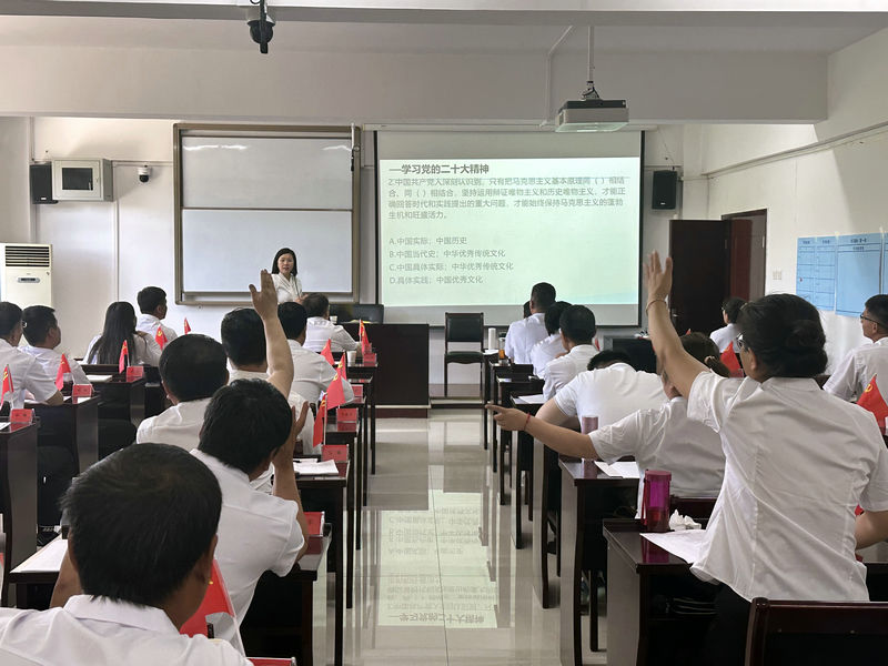 在培訓(xùn)課堂上,黨校教授以其深厚的黨性修養(yǎng)和文化底蘊為學(xué)員們細(xì)致宣講了黨的二十大精神、習(xí)近平新時代中國特色社會主義思想、《黨章》、《百年黨史》、《中國共產(chǎn)黨紀(jì)律處分條例》等黨的理論知識,課后通過知識競答進一步激發(fā)了學(xué)員的學(xué)習(xí)熱情、鞏固了課堂知識,通過團建活動增加了學(xué)員的團結(jié)協(xié)作精神和愛國愛黨精神。