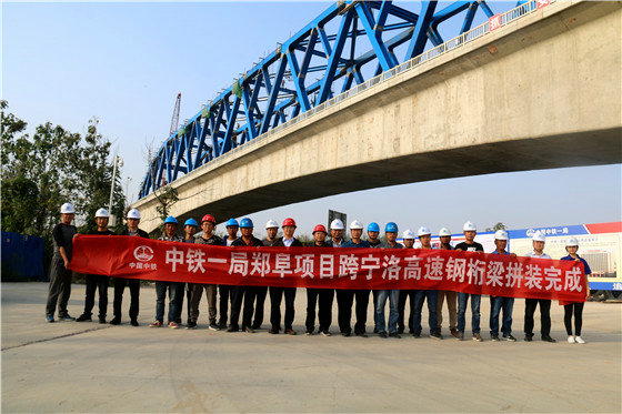 鄭阜鐵路跨寧洛高速曲弦鋼桁加勁連續(xù)梁鋼桁梁順利合龍
