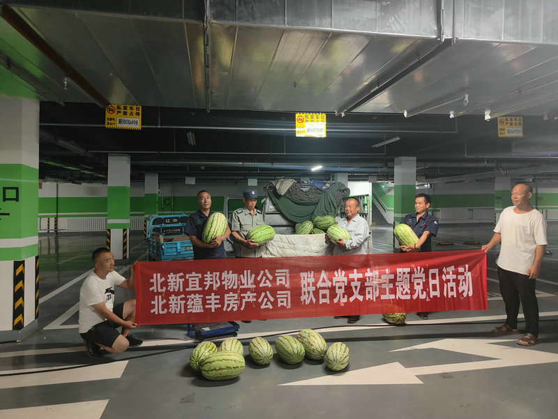 據說7月27日下午、宜邦物業(yè)司領導安排綜管辦分別為北新·雅居項目和北新·大廈項目購買了大量的西瓜,送去清涼。防止高溫天氣下作業(yè)的一線員工中暑造成不適,在送去清涼的同時,還叮囑全體員工提高安全防范意識,預防高溫中暑等。