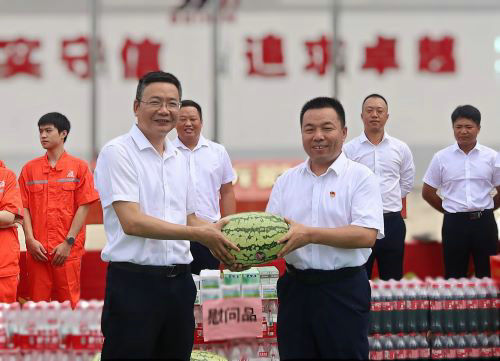 慰問(wèn)現(xiàn)場(chǎng),侯長(zhǎng)勇為項(xiàng)目職工送上西瓜、飲料、藿香正氣液等防暑降溫用品,關(guān)切詢問(wèn)職工的生活、工作情況,充分肯定了全體參建人員在貫通市政道路工程中所作出的貢獻(xiàn),并囑咐項(xiàng)目全力做好高溫作業(yè)保障工作,安全防護(hù)一刻也不容松懈,確保職工清涼度夏、安全度夏,以更加飽滿的熱情、更加充沛的精力,投入到下一階段的項(xiàng)目建設(shè)中。