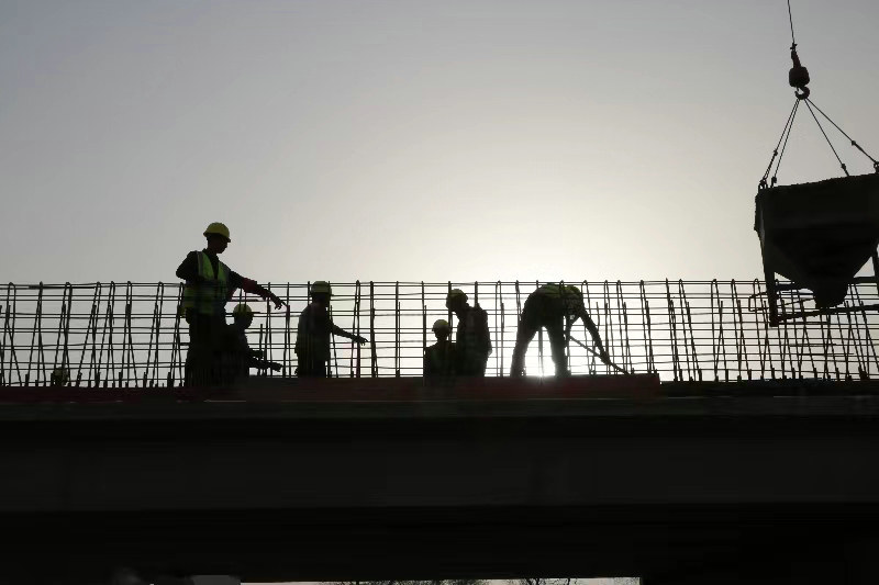 隨后,全體參建者連續(xù)奮戰(zhàn)了20天,向時間要進度。每天八點開工、中午不停工、晚上奮戰(zhàn)到十點,天天如此。為最大限度給日間墩柱混凝土澆筑預留時間,混凝土拌和站、預制梁場、鋼筋廠、模板綁扎等都安排在夜間進行,每位參建者的眼中都熬出了血絲,經(jīng)過大家不懈的努力和付出,創(chuàng)造了工程量同比日常多完成110%的新紀錄。