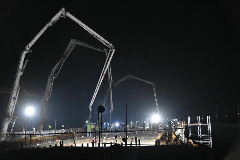 此次道岔連續(xù)梁澆筑自10日上午9點(diǎn)28分開(kāi)始,至11日凌晨2點(diǎn)28分結(jié)束,歷時(shí)17小時(shí),該公司項(xiàng)目部全體參戰(zhàn)人員連續(xù)作戰(zhàn)、盡職盡責(zé),完成混凝土澆筑1300方。