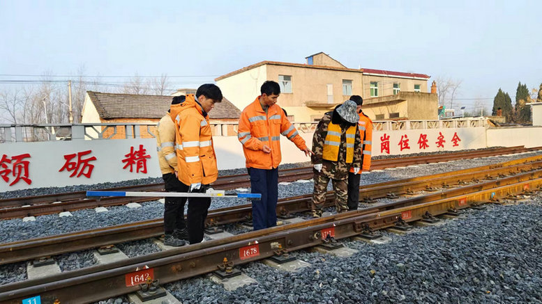 12月25日早上,在王寨示范隊(duì)練功場(chǎng),隊(duì)員翟祥雨向幾名同事詳解道岔檢查標(biāo)準(zhǔn)。大家邊聽(tīng)邊問(wèn),翟祥雨總是不厭其煩地解答。這是繼上周培訓(xùn)過(guò)一批同事后,翟祥雨在本周又開(kāi)始新的一批人員道岔檢查培訓(xùn)。