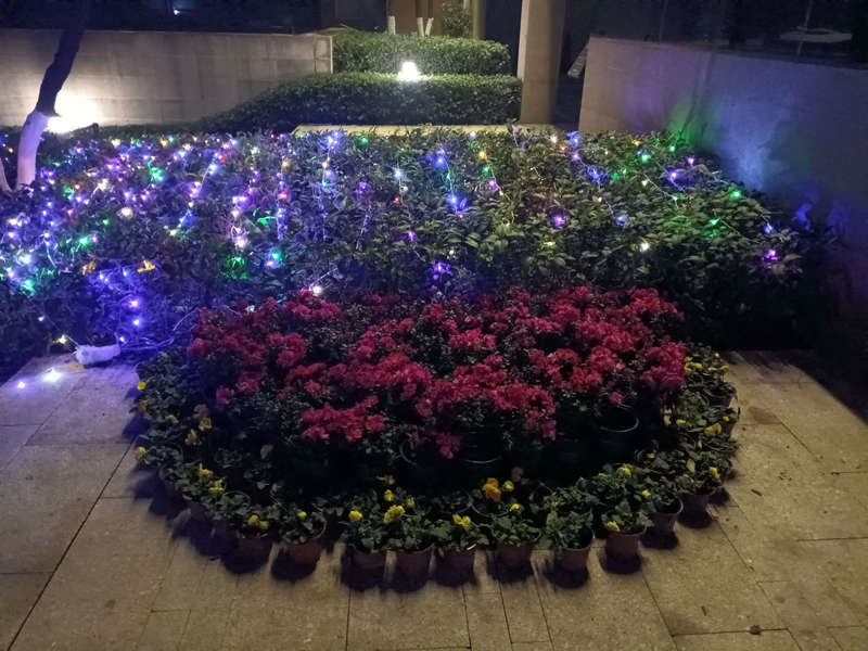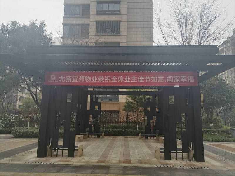 走近小區(qū)大門,首先映入眼簾的是入口上方懸掛著的橫幅“北新宜邦物業(yè)恭祝全體業(yè)主佳節(jié)如意.闔家幸福”;走進大門,各個主門上方都懸掛著火紅的大燈籠;就連各街區(qū)大門、側門入口旁都布滿了彩燈裝飾;街邊大樹上更是繽紛璀璨,掛滿了滿天星、流星雨等彩燈飾品,到了夜間各種燈飾散發(fā)著絢麗光芒,與夜色相得益彰,處處洋溢著濃濃的年味。