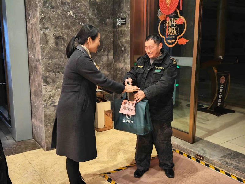 2月9日除夕夜8點(diǎn),小區(qū)內(nèi)燈籠高掛,彩燈亮堂,處處洋溢著濃濃的節(jié)日氛圍,宜邦物業(yè)公司項(xiàng)目經(jīng)理及項(xiàng)目主管攜帶分包好的慰問品并逐一將慰問品親手遞交至小區(qū)各崗位在崗職工,表達(dá)著公司對(duì)除夕夜奮戰(zhàn)在一線崗位員工的關(guān)心和關(guān)愛,并送去了新春祝福。此次慰問不僅包括物質(zhì)關(guān)懷,更涵蓋了深層次的精神撫慰,旨在提升團(tuán)隊(duì)的凝聚力和向心力。讓大家在工作崗位上也能感受到家的溫暖。