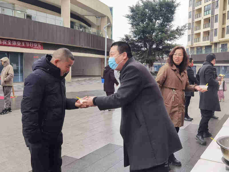 “李奶奶,快、請嘗嘗這是我們自己做的湯圓。王先生,您也嘗嘗。”—— 元宵節(jié)當天,宜邦物業(yè)為小區(qū)業(yè)主準備了足夠的湯圓,并讓工作人員早早將制作好的湯圓裝入碗中親手遞送到來到現(xiàn)場的每一位業(yè)主手中。品湯圓是元宵節(jié)不可或缺的傳統(tǒng)習俗,甜美可口的湯圓延續(xù)著新年的味道,寓意著團圓和美滿。雖然在氣溫不足7℃的天氣下,但業(yè)主們參加活動的熱情依然高漲。