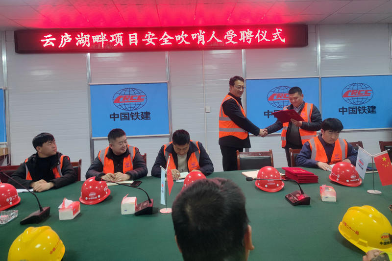 3月12日,中鐵二十一局云廬湖畔建設(shè)項目為6名“安全吹哨人”舉行受聘儀式,項目部管理人員、勞務工代表共計20人參加。