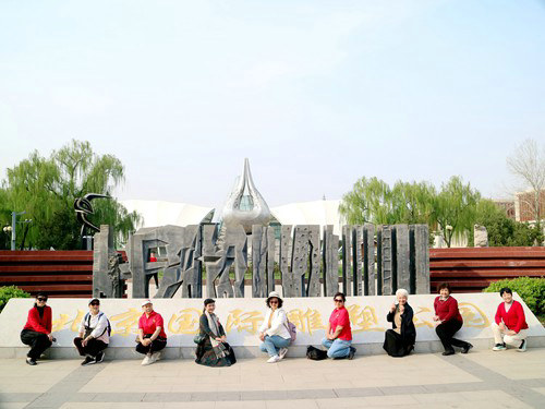午餐過后,大家不約而同的來到了一街之隔的“北京國際雕塑公園”,盡情參觀了各種風(fēng)格流派的、中外著名雕塑家的作品,“環(huán)境”(中國)、“晨”(俄羅斯)、“生命”(巴斯基坦)、“地平椅”(英國)、“進(jìn)化”(瑞士)、“和平老人”(中國)、宇宙吸引者(德國)、“和平之門”(墨西哥)……不算大的公園,卻有數(shù)不清的雕塑作品,令人目不暇接。陳朝凱似乎對(duì)這個(gè)地方很熟悉,陪大家聊天的中間,還時(shí)不時(shí)的介紹參觀的作品……