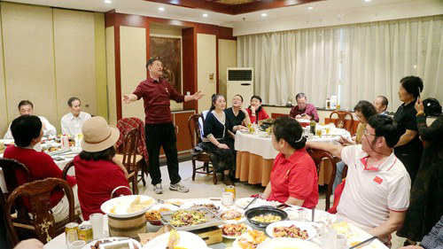 簡單休息后,晚餐在全聚德烤鴨店(玉泉路店)就餐。負(fù)責(zé)“鐵色之旅”活動(dòng)接待的北京團(tuán)隊(duì)成員閃亮登場——陳朝凱、李雅君、孫建敏等還分別指定了專人陪同進(jìn)京參與“鐵色之旅”活動(dòng)的戰(zhàn)友。席間,賈珍、仇彥玲、陳朝凱、羅光明、梅梓祥等盡情發(fā)揮,除即席清唱了歌曲,還回顧和研討了鐵道兵兵種在消失幾十年的今天,鐵道兵的戰(zhàn)友之情何以能歷久彌新?