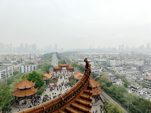 為了增加靈活性,負(fù)責(zé)人約定大家黃鶴樓景區(qū)自由賞玩,10點(diǎn)半統(tǒng)一在一個(gè)地方集中。于是我先后游玩了各種風(fēng)格的建筑,特別是黃鶴樓、白云閣兩大建筑,我還登上了樓層允許的最高層,對(duì)武漢全景一覽無(wú)遺,心胸都顯得異常開(kāi)朗。正如史錫騰美篇所說(shuō):“沿著蛇山頂上(一條專(zhuān)供游人行走)的小路向東去,一連串古色古香的牌坊別有風(fēng)味。”“這些牌坊一個(gè)個(gè)嵌套在一起,給人以視覺(jué)上的美感。”