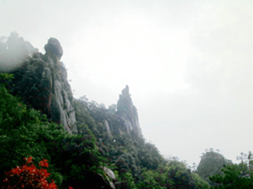 三清山,古有“天下無雙福地”、“江南第一仙峰”之稱,是歷有“小黃山”之稱的道教名山。三清山位于江西上饒東北部,主峰玉京峰海拔1819.9米,雄踞于懷玉山脈群峰之上。三清山因玉京、玉虛、玉華三座山峰高聳入云,宛如道教玉清、上清、太清三個最高境界而得名。——這都是網(wǎng)上查來的資料。