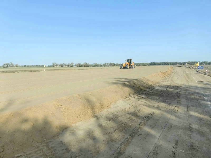 為保證試驗(yàn)段工作順利開展,項(xiàng)目部積極協(xié)調(diào)有關(guān)事項(xiàng),提前部署、靠前指揮,不斷加強(qiáng)與施工隊(duì)伍之間的配合,嚴(yán)格按照規(guī)范及各項(xiàng)施工流程開展工作,做到安全先行、務(wù)實(shí)管理、嚴(yán)把質(zhì)量。在施工過程中,現(xiàn)場技術(shù)人員、機(jī)械緊密配合,嚴(yán)格控制風(fēng)積沙與礫石土的運(yùn)輸、整平、碾壓等各個(gè)環(huán)節(jié),實(shí)時(shí)跟蹤指導(dǎo),嚴(yán)格把關(guān),順利完成各項(xiàng)工作,實(shí)現(xiàn)報(bào)驗(yàn)達(dá)到合格標(biāo)準(zhǔn),為后期施工提供了更精準(zhǔn)的數(shù)據(jù)支持。