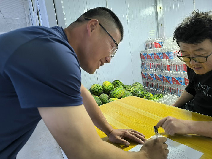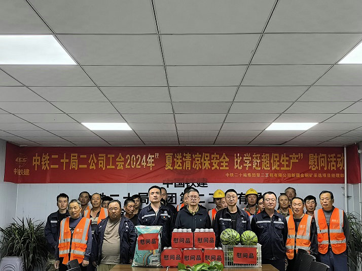 7月26日,新疆金銅礦采選項目開展“夏送清涼 保安全 比學(xué)趕超促生產(chǎn)”活動,有效保障高溫天安全施工生產(chǎn),進(jìn)一步提高生產(chǎn)效率,項目為施工人員采購了西瓜、礦泉水、綠豆等送清涼物資,并在第一時間將物資送到一線員工手里。
