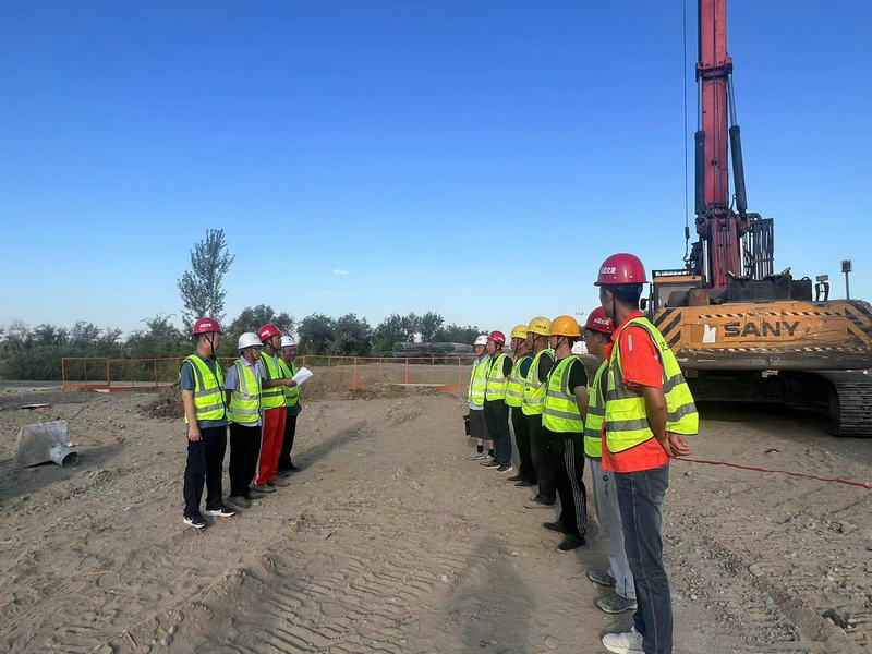 據介紹,為確保首樁施工順利進行,第八師G335二標項目部精心制定周密的施工方案,對施工人員進行了詳細的技術交底和安全培訓,保障了場地平整和測量放樣等工作,嚴格按照標準化施工。業(yè)主、監(jiān)理等各方單位現(xiàn)場監(jiān)督,對原材料質量、施工工藝等各個環(huán)節(jié)嚴格把關,保證試樁安全開鉆,確保工程質量。