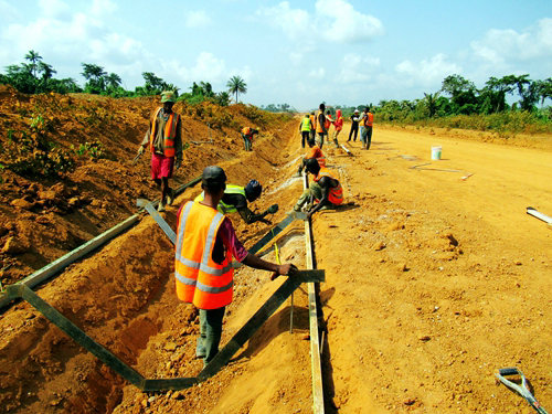 (屬地雇員正在組織路基邊溝的施工)