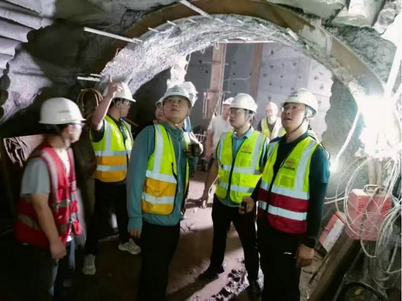項(xiàng)目經(jīng)理、黨支部副書記阮超(右1)帶隊(duì)例行月度綜合大檢查