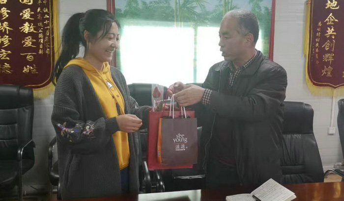 項(xiàng)目部專職副書記、黨工委主任雷忠寧為女職工送節(jié)日禮物
