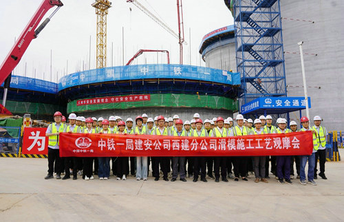 (西安訊)5月14日,中鐵一局建安公司西安建筑分公司在西安農(nóng)投15萬噸綜合性糧食倉儲基地(藍(lán)田)項目順利舉辦滑模施工工藝現(xiàn)場觀摩會。公司相關(guān)部門負(fù)責(zé)人及專家組成員,分公司領(lǐng)導(dǎo)以及項目部負(fù)責(zé)人、各項目安全、技術(shù)管理人員代表共計50人參加活動。