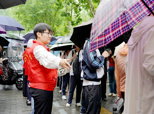 7日清晨,因雨水天氣,在社區(qū)的統(tǒng)一安排下,志愿者們迅速在學(xué)校門口搭建了應(yīng)急愛心助力志愿服務(wù)點,為考生和等待的家長們提供遮風(fēng)擋雨的地方,同時為考試和家長提供礦泉水、應(yīng)急文具、休息板凳等。待考生進(jìn)入考場后,志愿者主動邀請家長進(jìn)入帳篷下避雨,與家長們聊及高考注意事項,緩解家長的焦慮心情。過程中,志愿者們積極協(xié)助太乙路辦事處維持考場外紀(jì)律秩序,文明引導(dǎo)行人和車輛停放秩序,全力保障考點周邊環(huán)境??荚嚱Y(jié)束,志愿者們?yōu)槲磾y帶手機(jī)的考生提供電話服務(wù),幫助及時聯(lián)系家長,節(jié)約考生時間,做好充足午休,為下一場考試做好充分準(zhǔn)備。青年志愿者們高度的責(zé)任感和熱情的服務(wù)態(tài)度,成為西安市鐵一中考場外一道亮麗的風(fēng)景線。