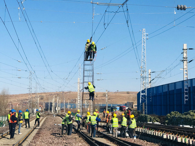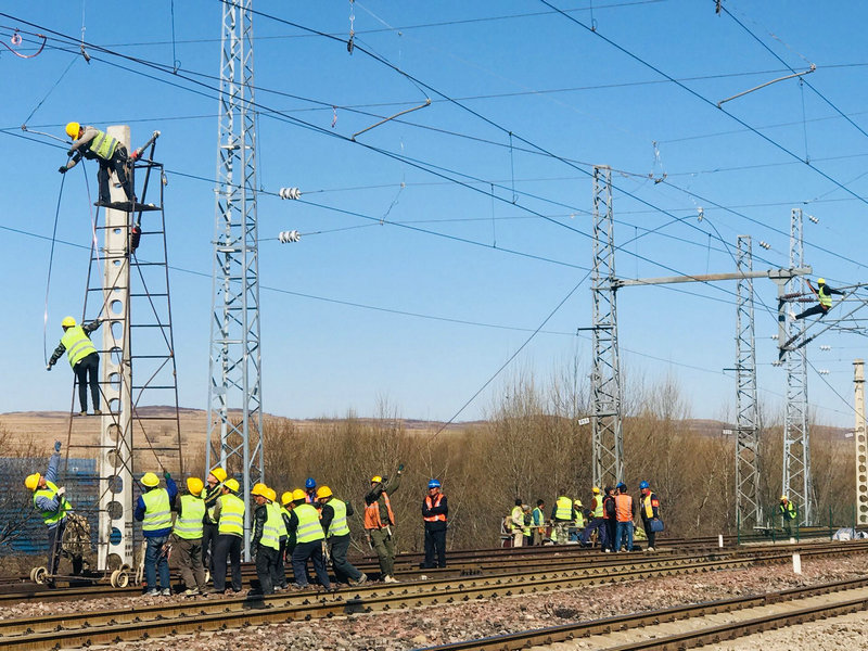這次Ⅲ級(jí)封鎖施工項(xiàng)目主要有電務(wù)復(fù)聯(lián)試驗(yàn)、電氣化接觸網(wǎng)改造等。主要工程量有定位調(diào)整接觸網(wǎng)導(dǎo)線、布置吊弦,安裝1處斷路器開(kāi)關(guān)引線、安裝4處軟橫跨跳線;室外設(shè)備送電調(diào)試2組道岔轉(zhuǎn)轍機(jī)、調(diào)試3架信號(hào)機(jī);室內(nèi)外設(shè)備聯(lián)鎖調(diào)試,試驗(yàn)8個(gè)區(qū)段軌道電路,電纜方向盒配線及通電試驗(yàn),移設(shè)既有信號(hào)機(jī)軌道變壓器等。
