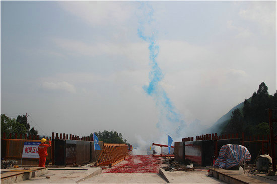 本網(wǎng)訊(胡天佑 田輝)聲聲炮仗齊轟鳴,橋梁澆注首開張。4月17日下午,中鐵二十一局五公司渝黔項(xiàng)目部首片T梁在二標(biāo)1#制梁場(chǎng)順利澆筑,這也是渝黔擴(kuò)能巴南段澆筑的第一片橋梁。渝黔擴(kuò)能第二總監(jiān)辦總監(jiān)駱文、渝黔擴(kuò)能第二總包指揮部副指揮長(zhǎng)周俊威等領(lǐng)導(dǎo)出席“首梁”澆筑儀式,共同見證“首梁”誕生全過(guò)程。