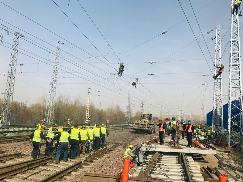 另悉,此次封鎖施工,是該項目封鎖施工開展以來,用工量最多一次站改施工。為確保施工安全正點,他們嚴(yán)格按照既定施工方案及專項安全防護(hù)方案進(jìn)行封鎖施工,人員、機(jī)械、設(shè)備在封鎖前兩小時就位準(zhǔn)備。封鎖施工命令下達(dá)后,210余名參戰(zhàn)人員快速就位,仔細(xì)核對各項技術(shù)參數(shù),落實技術(shù)方案,統(tǒng)籌部署各項工作,確保各個施工環(huán)節(jié)的時點控制責(zé)任到崗、精確到人。各施工作業(yè)隊人員克服作業(yè)面小、工程量大、施工環(huán)節(jié)復(fù)雜等困難,迅速投入到封鎖施工當(dāng)中。他們吊枕、扒砟、拆除道岔及線路、橫移道岔、回砟、搗固、防護(hù)等一系列交叉作業(yè),各道工序都嚴(yán)格按照預(yù)定方案完成,施工過程防護(hù)到位、安全可控,人員、機(jī)械作業(yè)有條不紊、相互配合。這樣經(jīng)過180分鐘安全、緊張、有序、正點地完成了第七階段封鎖施工任務(wù)。
