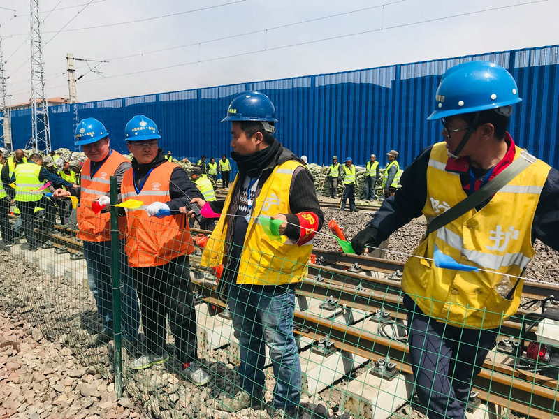 業(yè)主代表、總監(jiān)和安塘站主管領(lǐng)導(dǎo)現(xiàn)場動態(tài)督導(dǎo),確保施工安全正點開通