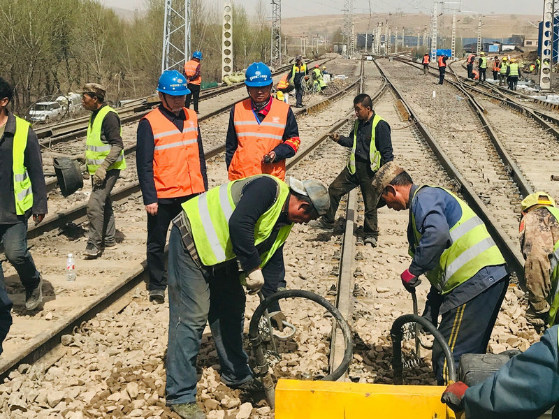 本次封鎖施工是開通同煤岢嵐煤炭專用線的重要環(huán)節(jié),也是項(xiàng)目最后一次Ⅲ級封鎖施工,從4月22日9:00時給點(diǎn),到12:00時封鎖結(jié)束,計180分鐘。主要施工項(xiàng)目為線路整修,小機(jī)搗固。建設(shè)者們在施工準(zhǔn)備中,仔細(xì)核對各項(xiàng)技術(shù)參數(shù),業(yè)務(wù)骨干反復(fù)研究技術(shù)方案,統(tǒng)籌部署落實(shí)各項(xiàng)工作,確保各個施工環(huán)節(jié)的時點(diǎn)控制責(zé)任到崗、精確到人,確保封鎖期間的人員、設(shè)備安全、和施工任務(wù)的順利達(dá)成。