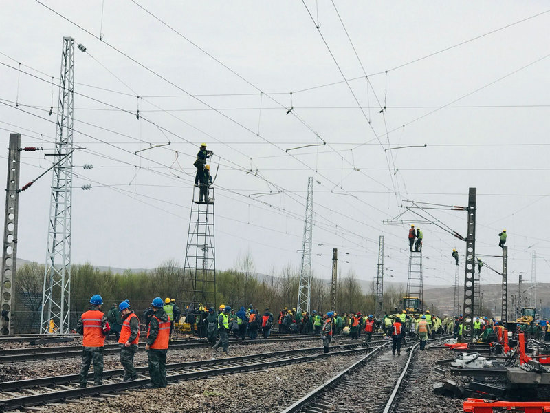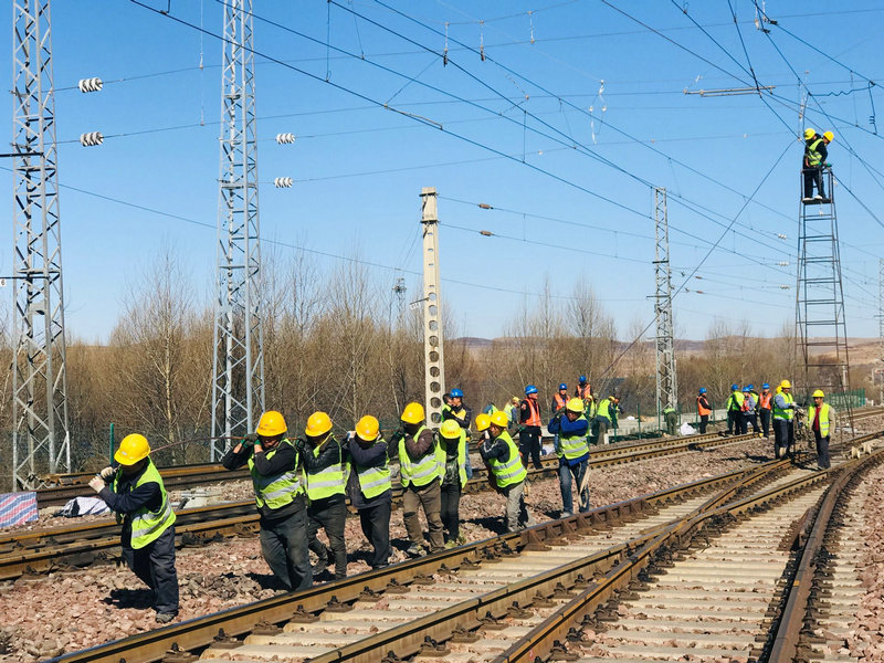 電氣化人為確保工程如期竣工,明確包保責(zé)任,全力緊咬工期,在確保安全質(zhì)量的前提下輪流作業(yè)施工,全力以赴完成工程施工任務(wù)。為提高工作效率,細化工序流程,優(yōu)化施工組織,強化現(xiàn)場管理,每天早點名、晚交班,召開生產(chǎn)碰頭會,當(dāng)天問題當(dāng)天處理。技術(shù)支持、物資保障、后勤服務(wù)、施工協(xié)調(diào)、安全防護等工作組,協(xié)調(diào)一致,高效運轉(zhuǎn)