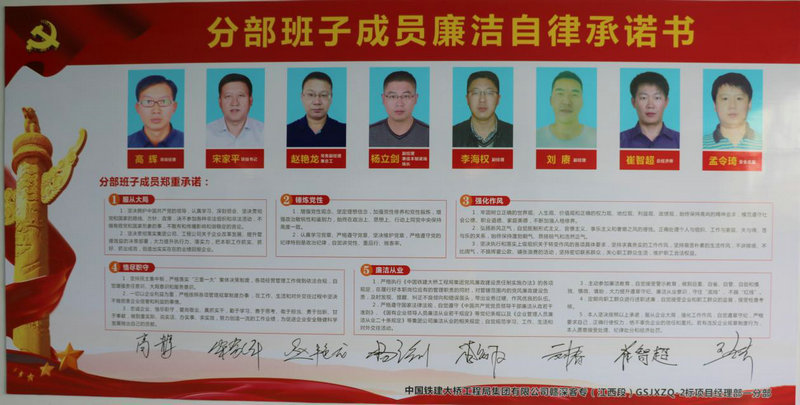 贛深高鐵(江西段)二標一分部全體員工將始終秉承“因勢而動、順勢而為、乘勢而上”的原則,以踏石留印、抓鐵有痕的盡頭,為工程公司推動反腐倡廉建設的發(fā)展貢獻自己的一份力量。