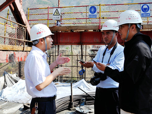 中國(guó)鐵路工程建設(shè)網(wǎng)訊(通訊員 鄭建軍)5月15日,備受各級(jí)領(lǐng)導(dǎo)關(guān)注、榮獲中國(guó)鐵路總公司昆明局集團(tuán)2018年轄區(qū)內(nèi)鐵路建設(shè)項(xiàng)目“標(biāo)準(zhǔn)化管理三星級(jí)樣板工地”的大臨鐵路瀾滄江雙線大橋,再次迎來(lái)中新社和昆明鐵道報(bào)的聯(lián)合采訪。擔(dān)負(fù)施工的中鐵十二局集團(tuán)大臨鐵路三工區(qū)項(xiàng)目經(jīng)理趙凡介紹說(shuō):瀾滄江雙線大橋位于小灣電站下游的深山峽谷之中。1號(hào)墩位于陡峭的瀾滄江左岸,2號(hào)墩位于水深達(dá)40米的瀾滄江中,最高墩76米,兩墩間為188米的連續(xù)剛構(gòu),是大臨鐵路全線跨度最大、橋墩最高的唯一一座跨越瀾滄江、連接大理和臨滄兩地的鐵路交通樞紐,是全線重點(diǎn)控制工程。滇西指揮部既然選擇了我們,我們就一定會(huì)有所擔(dān)當(dāng),保證按期完成大橋建設(shè)。