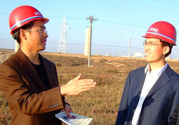 公司董事長、總經(jīng)理王志義(左)、黨委副書記、紀(jì)委書記(主持黨委工作)邵紅軍討論工作的情景