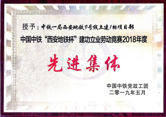 中國(guó)中鐵“西安地鐵杯”勞動(dòng)競(jìng)賽先進(jìn)集體獎(jiǎng)牌