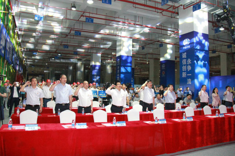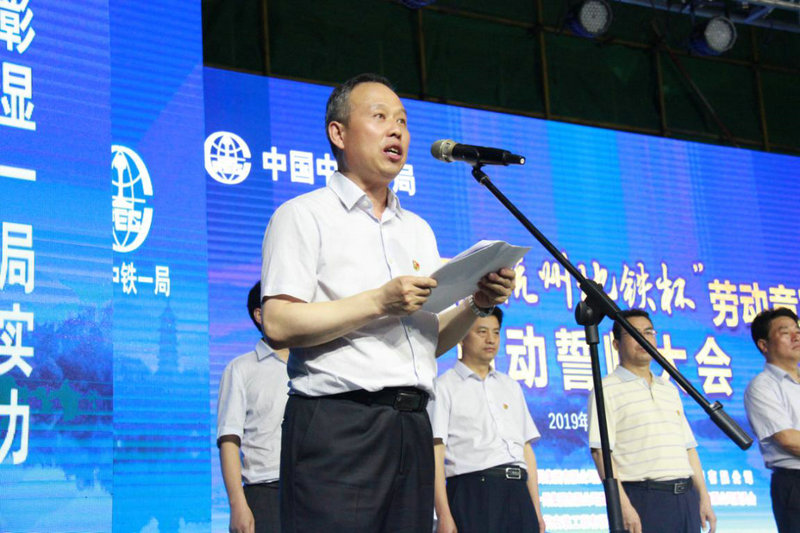 在誓師大會現(xiàn)場,還舉行了“工人先鋒號”、“黨員先鋒崗”、“青年突擊隊”授旗儀式,中鐵一局到會的全體員工面對鮮紅的戰(zhàn)旗許下了確保目標實現(xiàn)的錚錚誓言。
