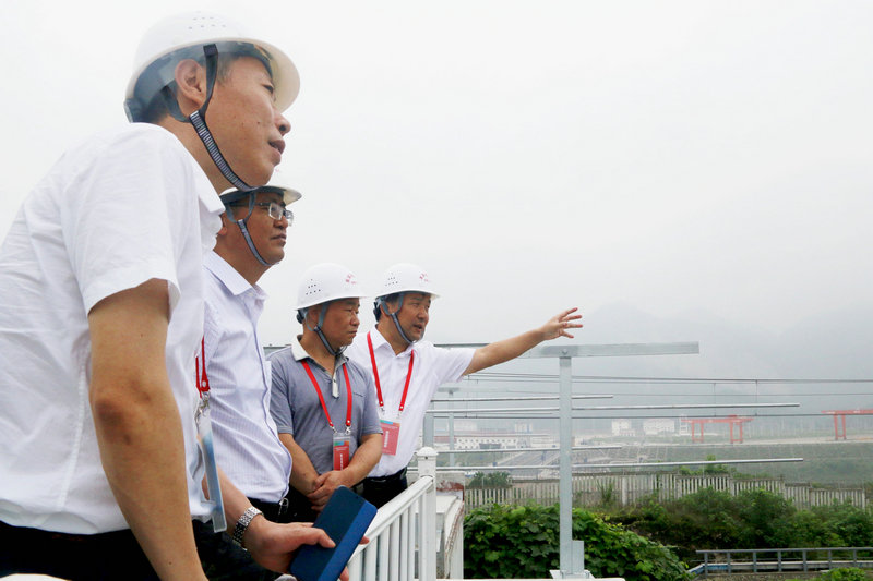 參與調(diào)研的領(lǐng)導(dǎo)在珞璜南特大橋查看并聽(tīng)取匯報(bào)
