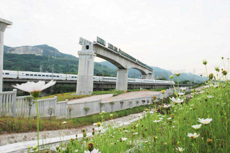 “按照將東環(huán)鐵路打造成西南片區(qū)普速鐵路標(biāo)準(zhǔn)示范工程的目標(biāo)要求,我們圍繞“綠色東環(huán)、生態(tài)東環(huán)、精品東環(huán)、美麗東環(huán)”的建設(shè)目標(biāo),堅(jiān)持以質(zhì)量安全和標(biāo)準(zhǔn)化管理為抓手,構(gòu)建黨政同向、上下齊心、保障有力的工作格局。堅(jiān)持樣板引路,強(qiáng)化“四化”支撐,注重精品設(shè)計(jì)和源頭把控,把綠化方案優(yōu)化在施工之前;聚焦精品工程建設(shè)與生態(tài)環(huán)境的深度融入,把綠化施工質(zhì)量掌控在驗(yàn)收交接之前;圍繞“強(qiáng)提升”目標(biāo),盯關(guān)鍵、重研發(fā)、破難題,把綠化達(dá)標(biāo)要求落實(shí)到每一個(gè)分項(xiàng)工程施工過(guò)程;通過(guò)嚴(yán)格日常管理和問(wèn)責(zé)考核,做到東環(huán)鐵路精品工程建設(shè)與環(huán)保生態(tài)理念的和諧共進(jìn),實(shí)現(xiàn)三季有花,四季常綠,打造一條綠色鐵路生態(tài)景觀廊道的建設(shè)目標(biāo)。”中國(guó)國(guó)家鐵路成都局集團(tuán)重慶鐵路樞紐東環(huán)建指指揮長(zhǎng)寧遠(yuǎn)思如是說(shuō)。