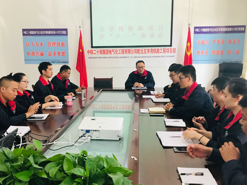 本站府谷訊(記者張明)今天是八一節(jié),為了紀(jì)念中國人民解放軍建軍92周年,傳承和弘揚(yáng)鐵道兵精神,為實(shí)現(xiàn)全面鼎盛復(fù)興夢想貢獻(xiàn)智慧和力量,中鐵二十局集團(tuán)電氣化公司乾元五字灣鐵路項(xiàng)目舉辦了“慶八一”建軍節(jié)座談會(huì)。