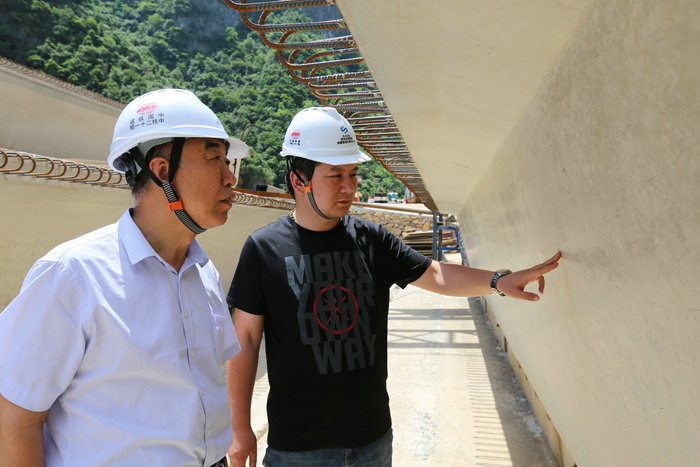項目書記程文華(左)、副經(jīng)理劉磊磊(右)檢查箱梁質(zhì)量
