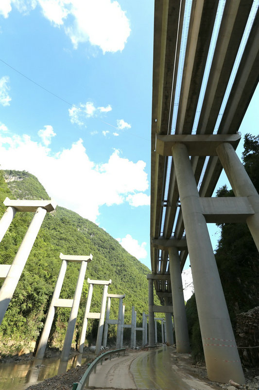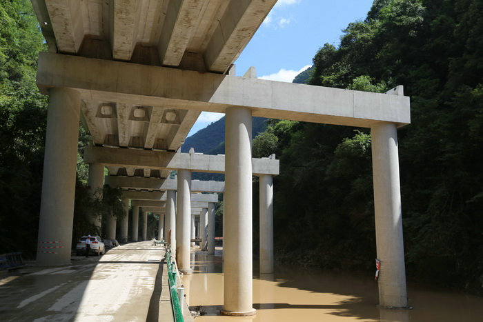 大橋一半在河里一半在便道上