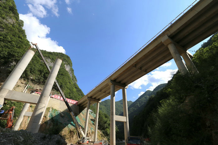 在西鎮(zhèn)高速的建設(shè)中,中鐵二十一局三公司承擔著XZ-6標的施工任務(wù)。面對艱險無比的地質(zhì)條件,他們在開局就受到了嚴酷的挑戰(zhàn),險些“敗走麥城”。西鎮(zhèn)高速因受地勢限制,其設(shè)計十分獨特,可以說是我國高速公路的一大奇觀。涇洋河屬長江水系漢江流域,從鎮(zhèn)巴流經(jīng)西鄉(xiāng),在西鄉(xiāng)匯入牧馬河流域后流入漢江。涇洋河發(fā)源于鎮(zhèn)巴以上的崇山峻嶺之中,河岸兩邊都是幾百米高的大山,且山勢陡峭,近百公里長的河流在秦巴山腹地峽谷中穿行蜿蜒而下。設(shè)計上,西鎮(zhèn)高速除為數(shù)不多的隧道和極少的一部分路基外,全部是橋梁工程,全線橋隧比例高達91.5%,為陜西省近年來橋隧比例最高的高速公路之一;路線走向一直沿河而行,這在其他地方是不可能見到的景觀,而它的修建難度,也是令人咋舌。
