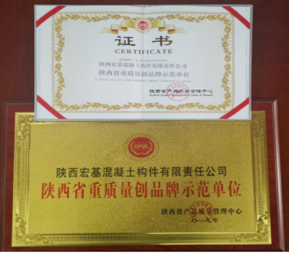 陜西省重質(zhì)量創(chuàng)品牌示范單位榮譽(yù)
